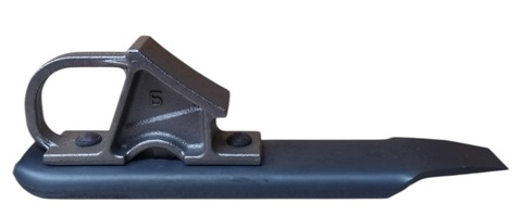 Башмак тормозной железнодорожный горочный устанавливается под колеса подвижного состава на поверхность катания головки рельса. Тормозной башмак препятствует самопроизвольному движению железнодорожного подвижного состава.